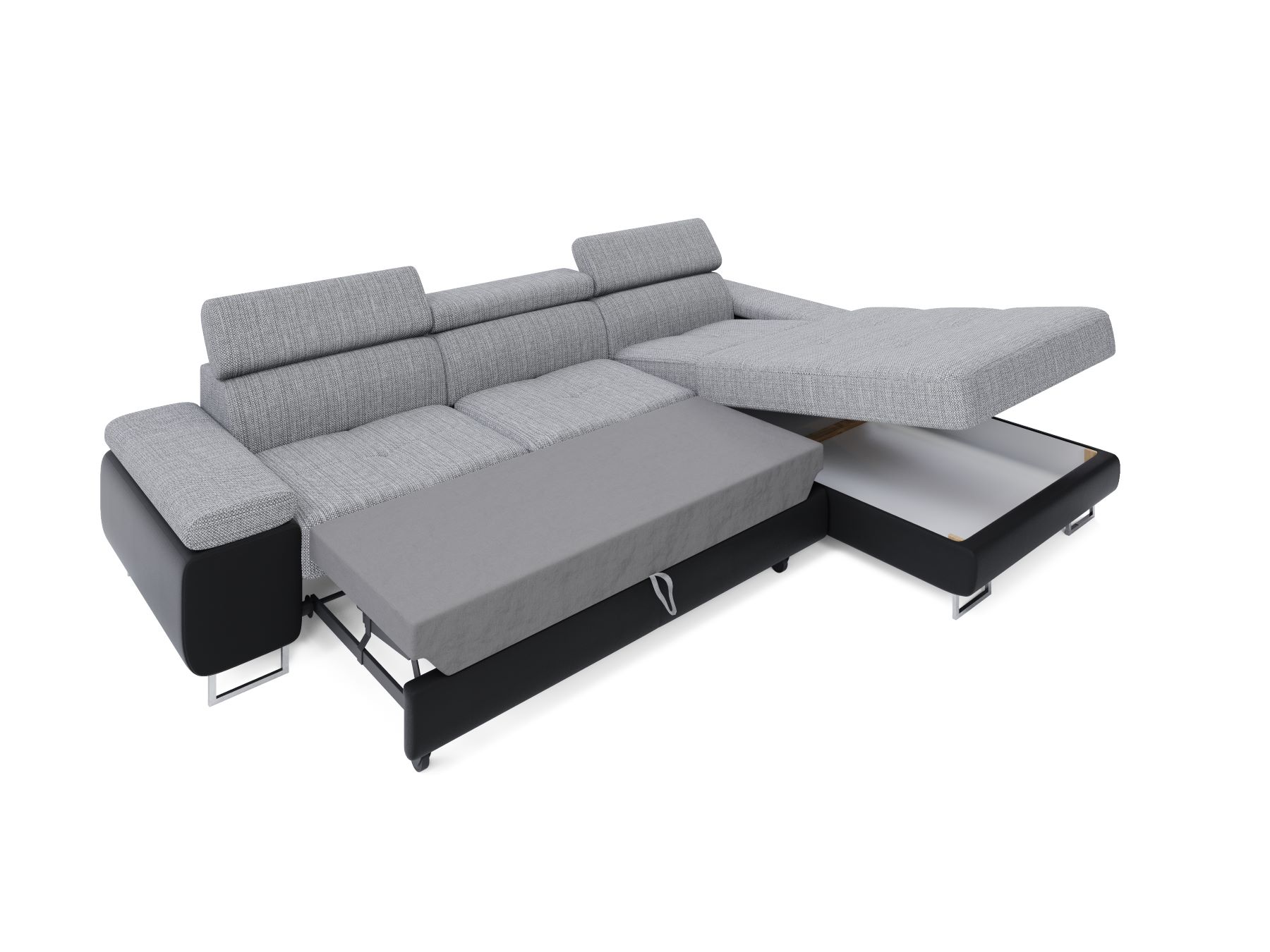 Precízne prešívanie sedadla, elegantný tvar a nohy zaručia moderný dizajn vo vašej obývačke. Sedačka je vybavená polohovateľnými opierkami hlavy, čo znamená, že bez ohľadu na to, kto tento nábytok používa, prispôsobí si výšku operadla svojim potrebám.