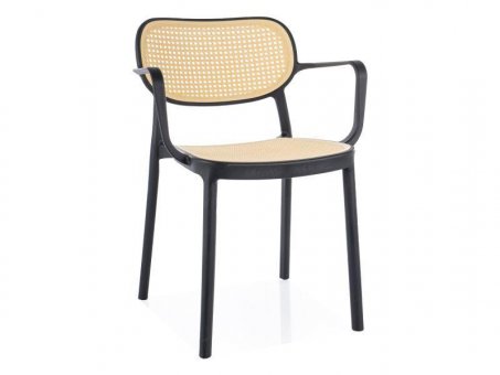 Farba: čierna, ratanový efekt. Nosnosť stoličky je 150 kg.
