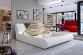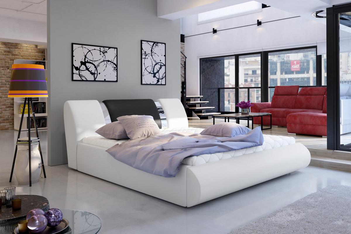 Čalúnená posteľ FLAVIO sa hodí do každej modernej spálne. Výnimočnou ju robí najmä dizajnové čelo postele doplnené lesklými pásmi. Súčasťou postele je výklopný rošt, pod ktorým je praktický úložný priestor. Mäkké časti postele sú vyrobené z PUR peny T 2542 a čalúnené ekokožou Soft 17/Soft 11