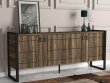 Komoda má štýlové kovové úchytky. Hodí sa do obývačky i jedálne.
