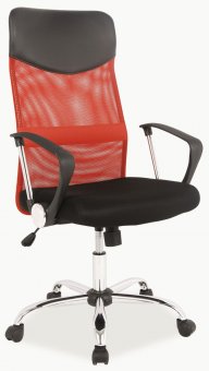 Kancelárske kreslo Q-025 v zaujímavom červenom prevedení. Sedacia časť je potiahnutá priedušnou sieťkovou membránou. Opierka hlavy je potiahnutá čiernou ekokožou. Kovová konštrukcia je pochrómovaná. Opierky na ruky a kolieska sú z plastu. Polohovateľné kreslo - mechanizmus TILT. Výškovo nastaviteľný sedák 45-53cm. Rozmer (v/š/h) 111-120 x 62 x 50 cm.