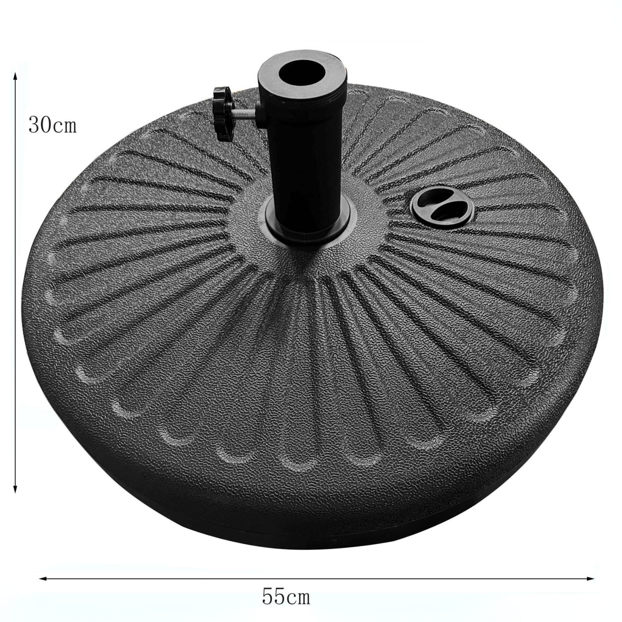 S rozmermi 30 cm na výšku a priemerom 55 cm je vhodný pre rôzne typy slnečníkov. Použitie je jednoduché – stačí ho umiestniť na zvolené miesto a naplniť vodou alebo pieskom, čím získate potrebnú hmotnosť pre maximálnu stabilitu. Následne môžete slnečník bezpečne upevniť a vychutnať si pohodový oddych v tieni.