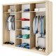 Vo vnútri je skriňa riešená vešiakovou tyčou a policami (viď obrázok). Rozmery (v/š/h) 215 x 250 x 61 cm.