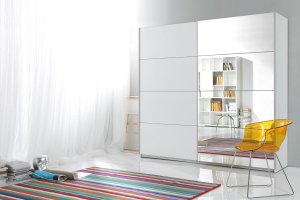 Posuvné dvere, zrkadlo, viacero rozmerov a farieb. Farba: biela. Rozmer (š/v/h) 215 x 122 x 65 cm.