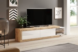 SILKE 41 TV stolík 2 šuplíkový, biely lesk/dub wotan