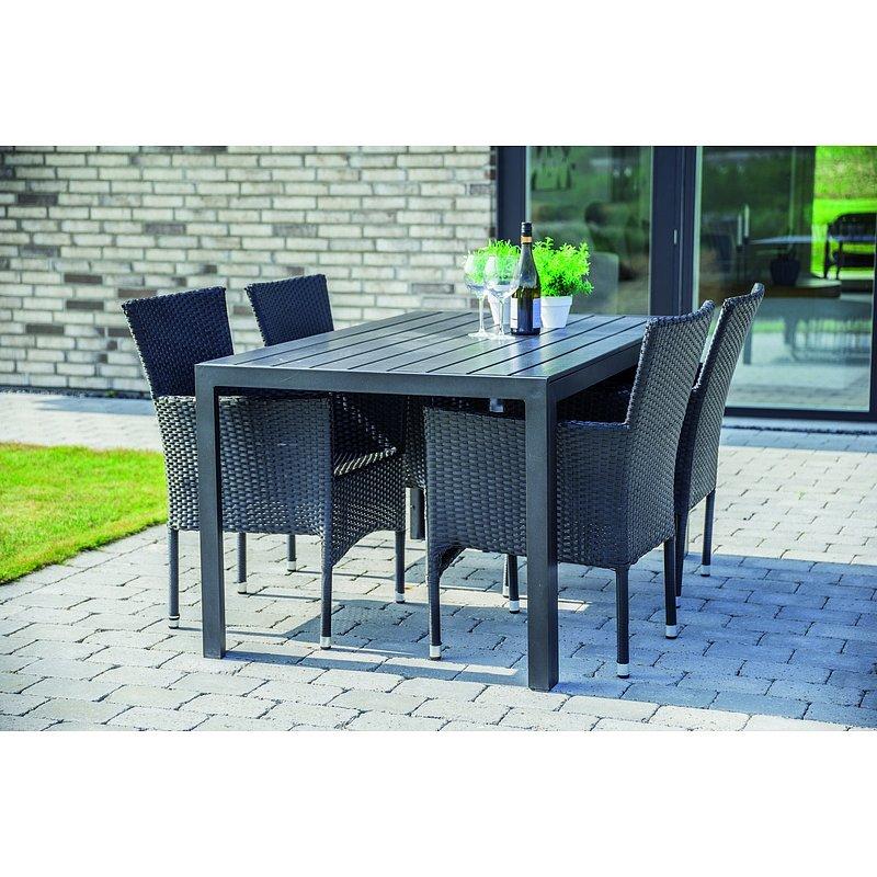Táto unikátna záhradná zostava z umelého ratanu ponúka štedrý priestor pre chvíle oddychu a relaxu. Vďaka svojmu dizajnu i praktickému prevedeniu sa stane neoddeliteľnou súčasťou vášho exteriéru. Použitie hliníkovej konštrukcie pre záhradný nábytok, ktorý potrebuje odolávať zvýšenej vlhkosti, je práve tou správnou voľbou. Hliníková konštrukcia záhradnej zostavy je ľahká a nehrdzavie. Vďaka tomu s takouto konštrukciou budete bez starostí. Odolná polywoodová doska stola je umiestnená na hliníkovej konštrukcii.